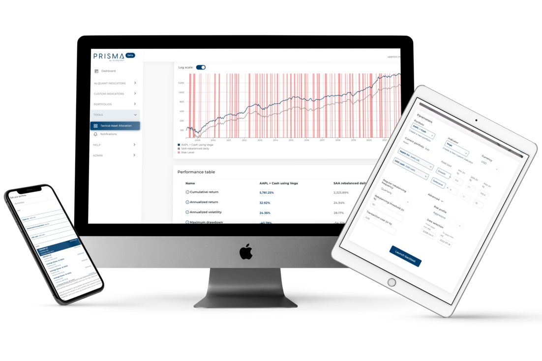 Prisma is designed to help you make better decisions in the tactical asset allocation of any portfolio. By creating a portfolio and backtesting it, you can see how your portfolio would have performed in the past and apply our risk indicators to make tactical reallocations that meet your investment constraints. Simply select the risk indicators you want to use and your investment constraints and see how Prisma's insights can add value to your tactical asset allocation. With Prisma, there's no need to sacrifice your investment goals to manage risk.